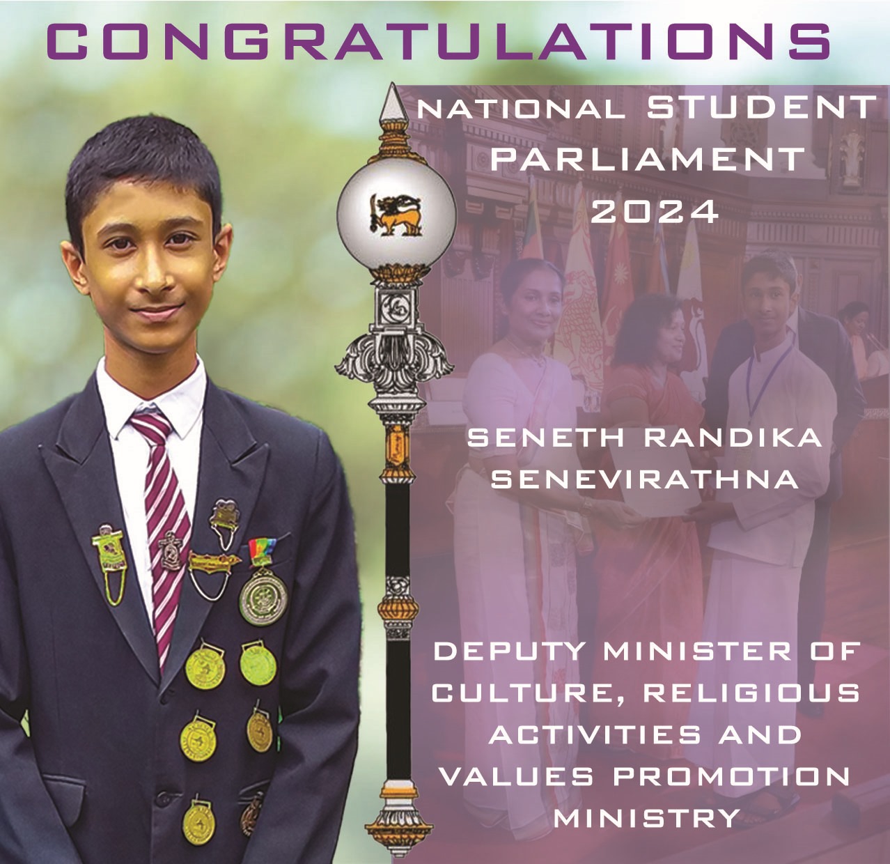2024 ශිෂ්ය පාර්ලිමේන්තුව සඳහා අප පාසලෙන් තෝරා පත් වූ සෙනෙත් රන්ෂ්දික සෙනෙවිරත්න ශිෂ්යයා.